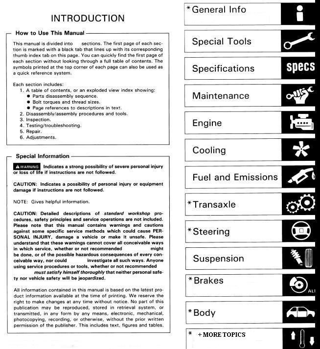 FACTORY HIGHLY DETAILED REPAIR MANUALS, WITH COMPLETE INSTRUCTIONS AND ILLUSTRATIONS, WIRING SCHEMATICS AND DIAGRAMS TO COMPLETELY SERVICE AND REPAIR YOUR VEHICLE.